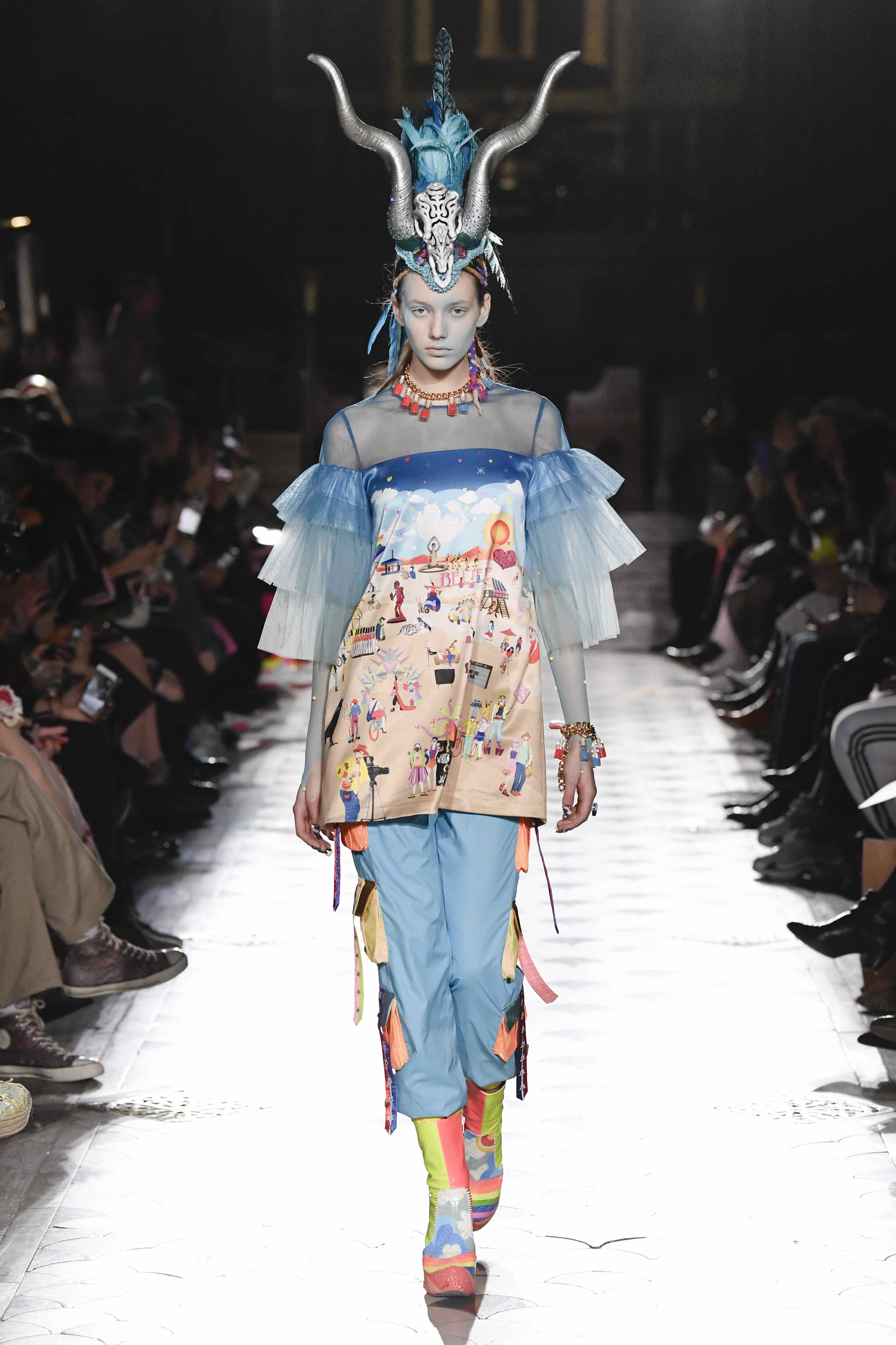 Image précédente Image suivante Ready to wear, winter 2019 2020, fashion week, womenswear, Paris, Manish Arora Model wears an outfit , as part of the women s ready-to-wear winter 2019 2020, women fashion week, Paris, France, from the house of Manish Arora